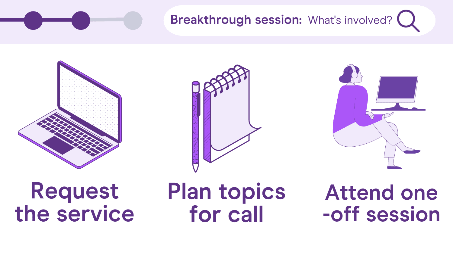 1. Once you have had an introductory ‘Virtual Coffee’ with an Expert, you can ‘Request’ next to Breakthrough Session on their profile (if they choose to offer it).